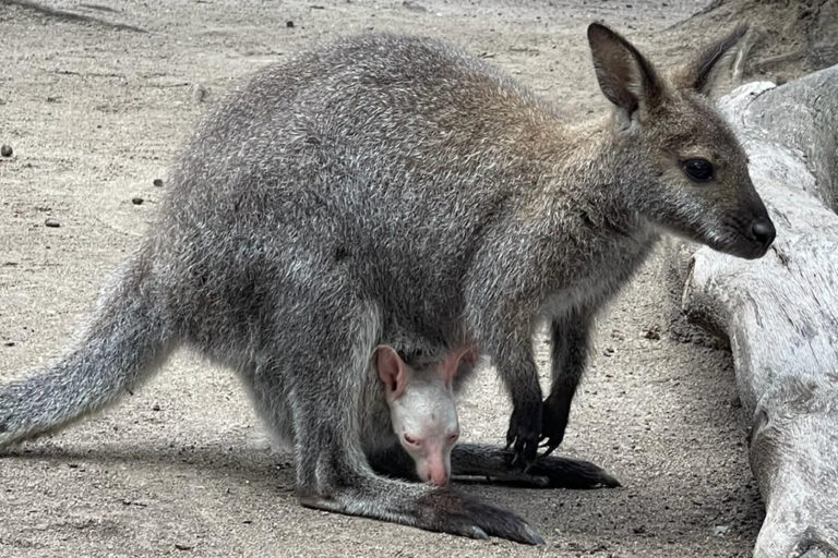 Après avoir grandi l’hiver bien au chaud dans la poche de leur maman les bébés wallabies sortent timidement leur tête à l’extérieur.